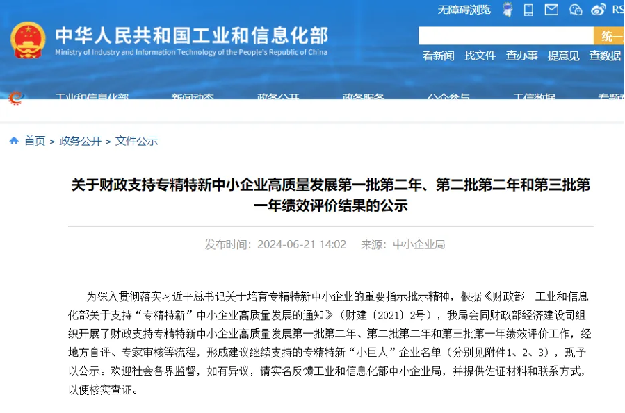 6月21日,工信部网站公示“关于财政支持专精特新中小企业高质量发展第一批第二年、第二批第二年和第三批第一年绩效评价结果”,宏源防水科技集团有限公司在财政继续支持的专精特新“小巨人”企业之列。