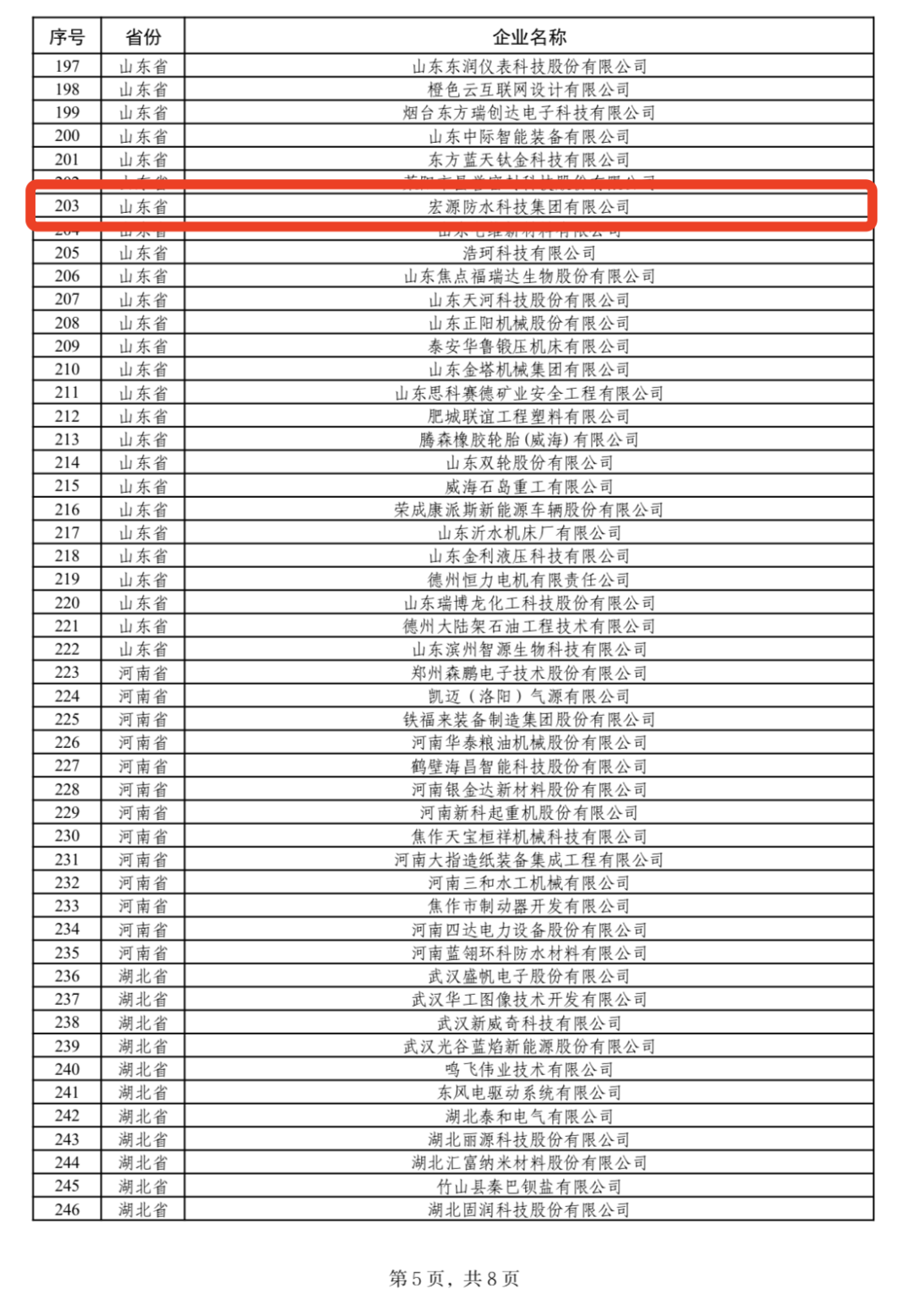 建议继续支持的国家级专精特新“小巨人”企业名单中,宏源防水在列