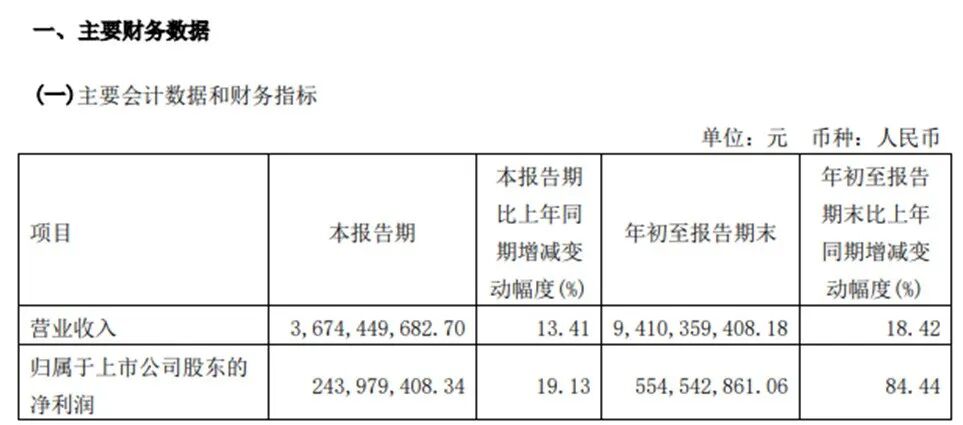 其中,第三季度,东方雨虹单季实现营收85.08亿元,同比增长5.41%;实现归母净利润10.19亿元,同比增长48.05%;归母扣非净利润9.29亿元,同比增长47%。