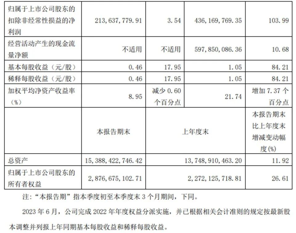 2023年前三季度,北新建材主要会计数据和财务指标如下: