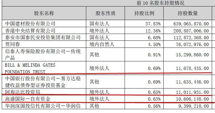 或许正是如此,在北新建材最新的前十大股东中,比尔及梅林达·盖茨基金会(Bill & Melinda Gates Foundation)、阿布达比投资局、高盛国际-自有资金等境外投资机构仍然在列,且持股数量仍在1000万股以上。
