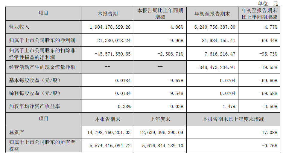 凯伦股份前三季度营收20.8亿元,单季净利润暴增2190.92%